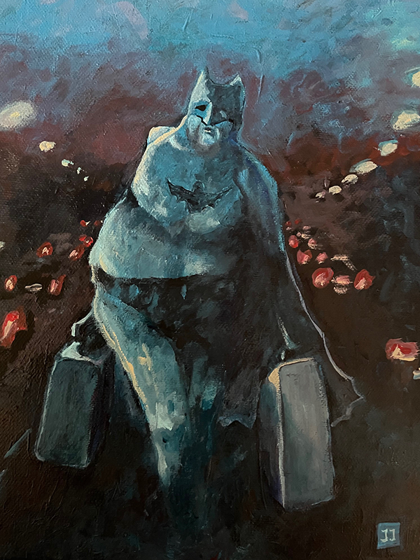 Retræte oktober 10, 2025oktober 10, 2025 • admin Retræte Painting by Jens Josefsen Acrylic/mixed on canvas 30 x 40 /2024 Solgt Selv helte kan blive trætte og gamle "det klare I selv"
